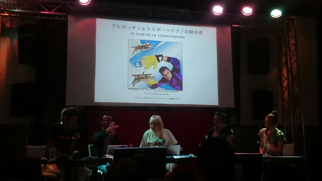 会場から反響があったのが、アルゼンチンからのスペースディスコの継承者、El Club de la Computadora(コンピュータ・クラブ)です。ちょうど、当日の朝、メンバーのNicolas MarinoとFacundo BarreraからFacebookでコンタクトがあり、この話をしたらとても喜んでくれました。みなさん、アルゼンチンのスポーツテクノを応援してください!